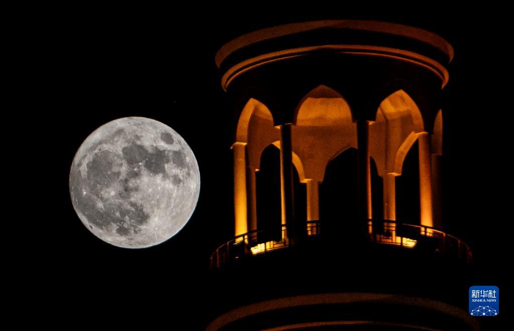 這是8月30日在卡塔爾多哈拍攝的“超級月亮”。