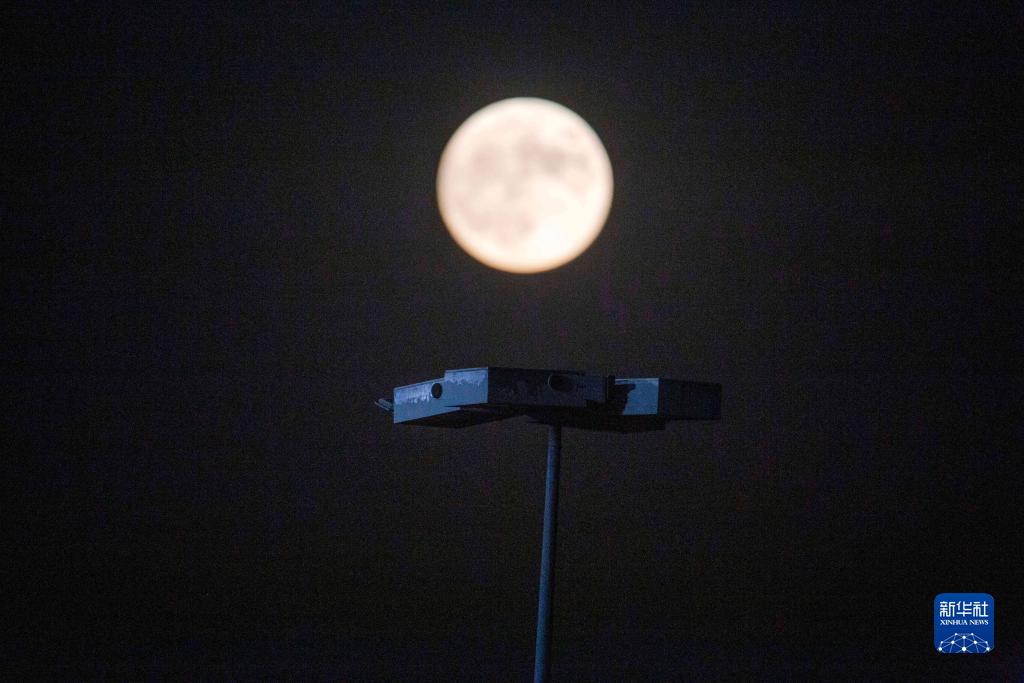 這是8月30日在塞浦路斯首都尼科西亞拍攝的“超級月亮”。