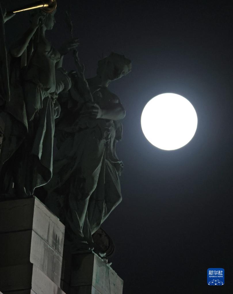 這是8月31日在比利時(shí)首都布魯塞爾拍攝的“超級月亮”。