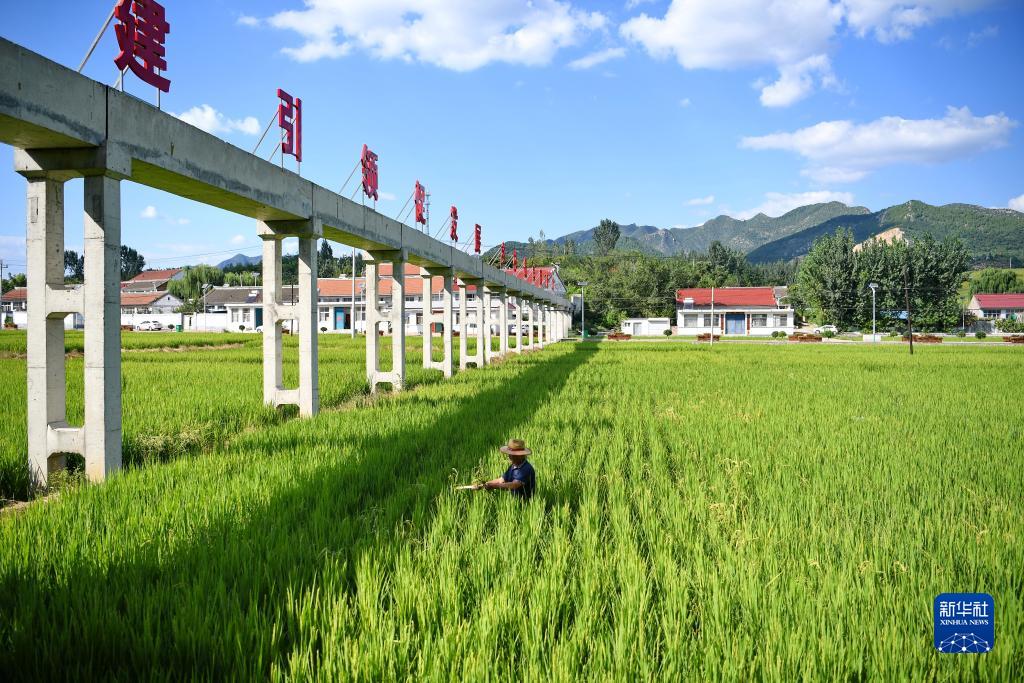8月29日,河北唐山遷安市樓子山村農民在水稻田內除草。該村打造精品大米生產(chǎn)基地,并建設稻香小鎮。