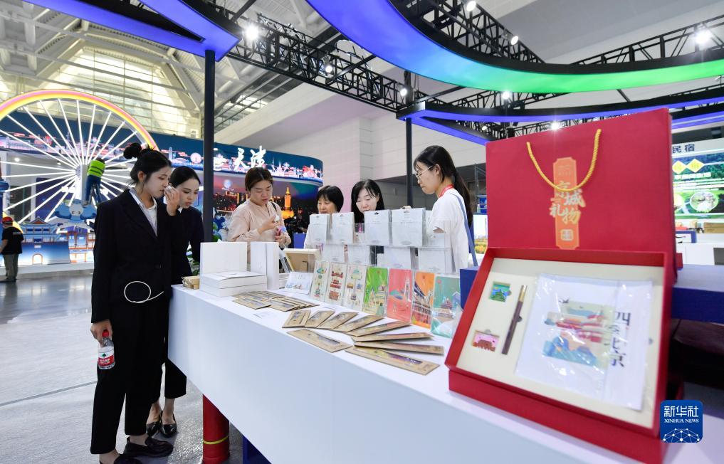 8月31日,在國家會(huì )展中心(天津),嘉賓及媒體記者參觀(guān)展出的旅游文創(chuàng )展品。