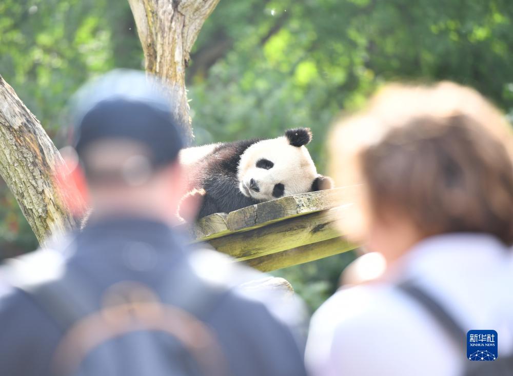 8月31日,游客在德國柏林動(dòng)物園觀(guān)看大熊貓“夢(mèng)圓”。