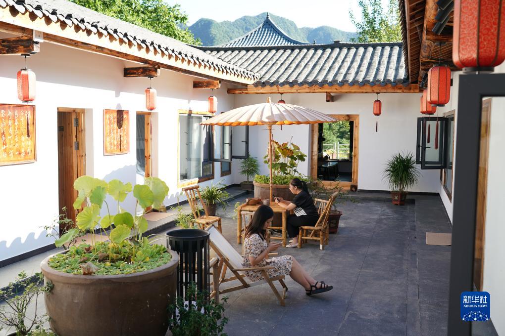 8月31日,游客在旬陽(yáng)市構元鎮羊山村一家民宿內休閑游玩。