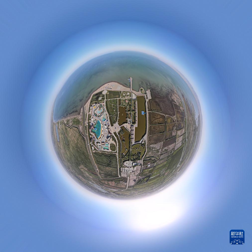 8月31日拍攝的新疆博斯騰湖大河口景區(無(wú)人機全景照片)。