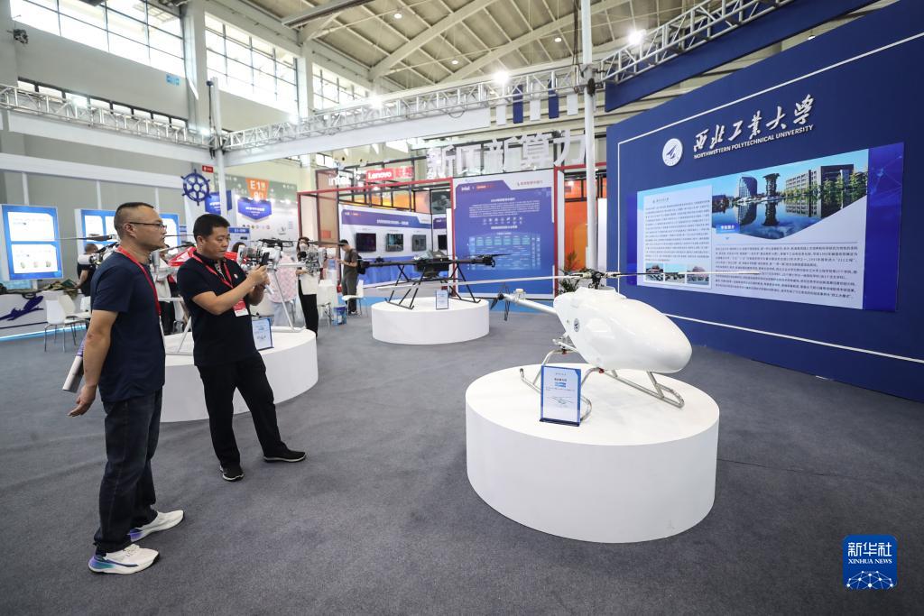 9月1日,參觀(guān)者在第二十一屆中國國際裝備制造業(yè)博覽會(huì )現場(chǎng)參觀(guān)展出的電動(dòng)直升機。