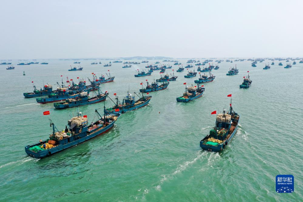 當日,為期四個(gè)月的黃渤海伏季休漁結束,所涉漁區迎來(lái)“開(kāi)?!?,各漁港碼頭千帆競發(fā),漁船出海進(jìn)行捕撈作業(yè)。