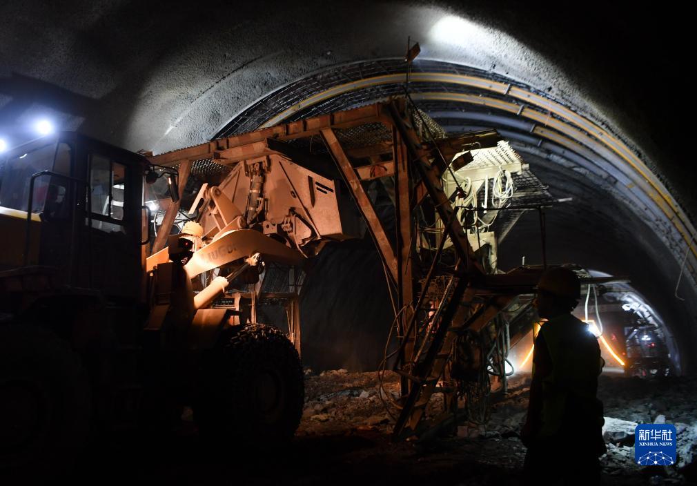 9月1日,施工人員在位于陜西省寶雞市麟游縣的麟法高速石臼山隧道內施工。