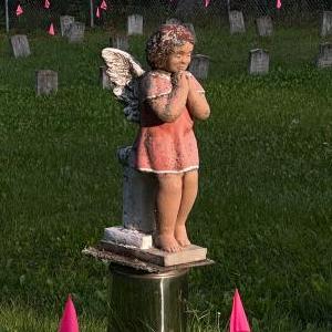這是8月31日在加拿大薩斯喀徹溫省博瓦爾印第安人寄宿學(xué)校舊址拍攝的用粉色旗子標出的疑似兒童和嬰兒墓地。