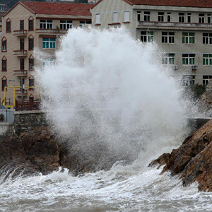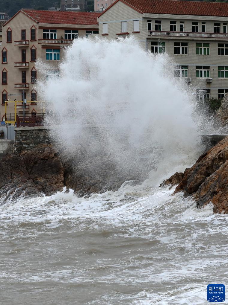 受今年第11號臺風(fēng)“??庇绊?,在浙江省溫嶺市石塘鎮金沙灘附近,海浪一波接著(zhù)一波拍向岸邊,激起巨大的浪花。