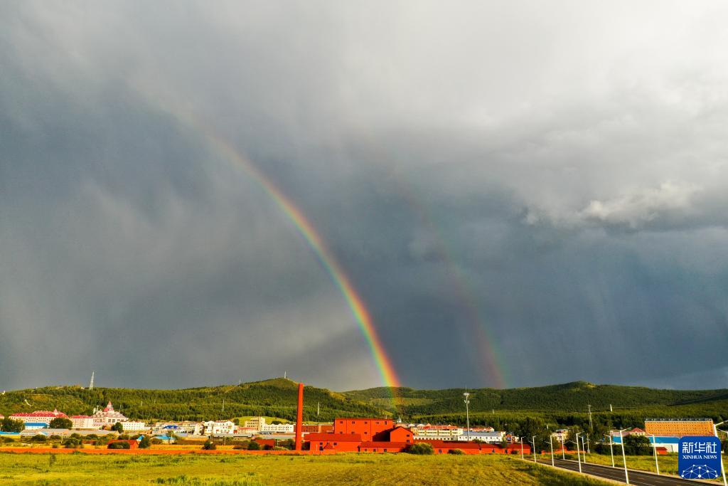 這是8月31日拍攝的阿爾山市的彩虹(無(wú)人機照片)。