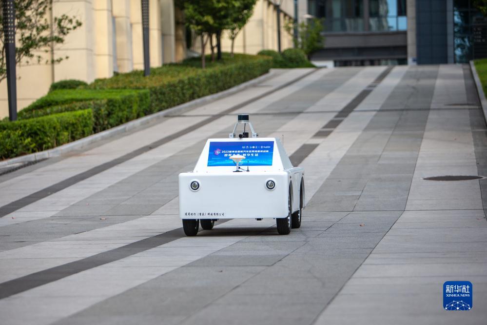 這是9月1日在重慶市永川區拍攝的參加城市功能賽功能型無(wú)人車(chē)組別賽事的智能網(wǎng)聯(lián)綜合實(shí)訓車(chē)。