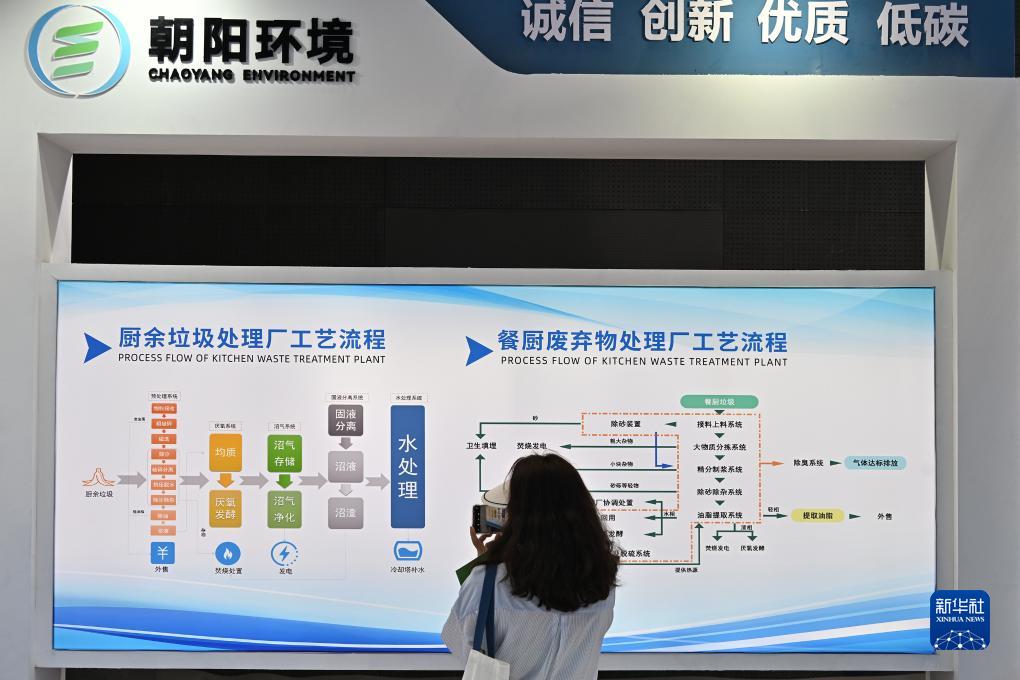 9月2日,在國家體育館舉行的服貿會(huì )環(huán)境服務(wù)專(zhuān)題展上,觀(guān)眾拍攝廚余垃圾、餐廚廢棄物處理流程。