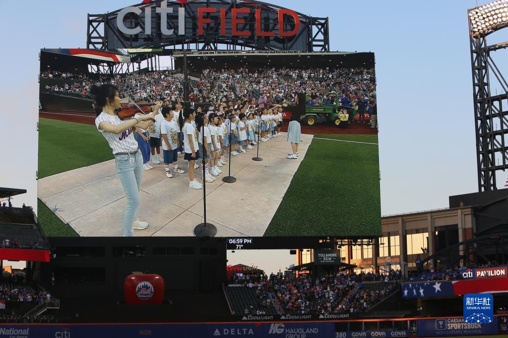 9月1日,在美國紐約大都會(huì )棒球隊主場(chǎng)花旗球場(chǎng),兒童合唱團在“中華之夜”暨“你好!中國”旅游推廣品牌發(fā)布活動(dòng)結束后表演。