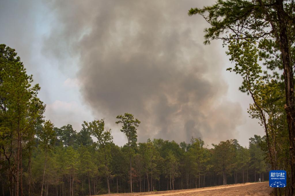 這是9月2日在美國得克薩斯州沃克縣亨茨維爾附近拍攝的煙霧。