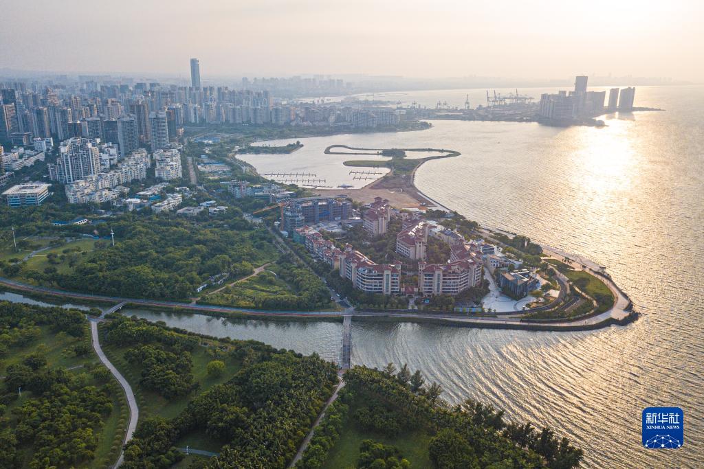 9月1日在海南省??谑信臄z的??跒尘吧o(wú)人機照片)。??跒澄挥诤D鲜『?谑兄行膮^,海灣面積268.2平方千米,打造了“椰風(fēng)海韻、灣城融通”的海灣景觀(guān),是??谑邪l(fā)展的重要依托和生態(tài)名片。