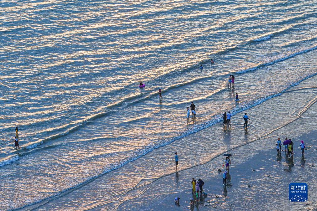 游客在海南省三亞市三亞灣游玩(8月30日攝)。三亞灣位于海南省三亞市主城區南部,海域面積75平方千米,是三亞市作為著(zhù)名旅游目的地的重要資源依托。