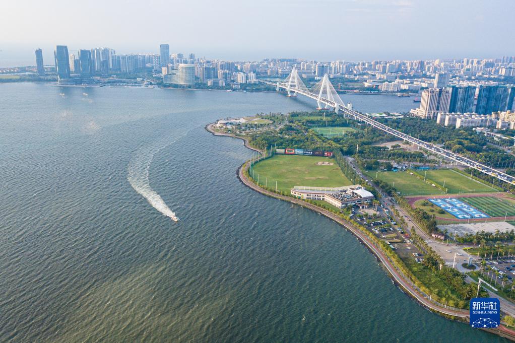 9月1日在海南省??谑信臄z的??跒尘吧o(wú)人機照片)。??跒澄挥诤D鲜『?谑兄行膮^,海灣面積268.2平方千米,打造了“椰風(fēng)海韻、灣城融通”的海灣景觀(guān),是??谑邪l(fā)展的重要依托和生態(tài)名片。