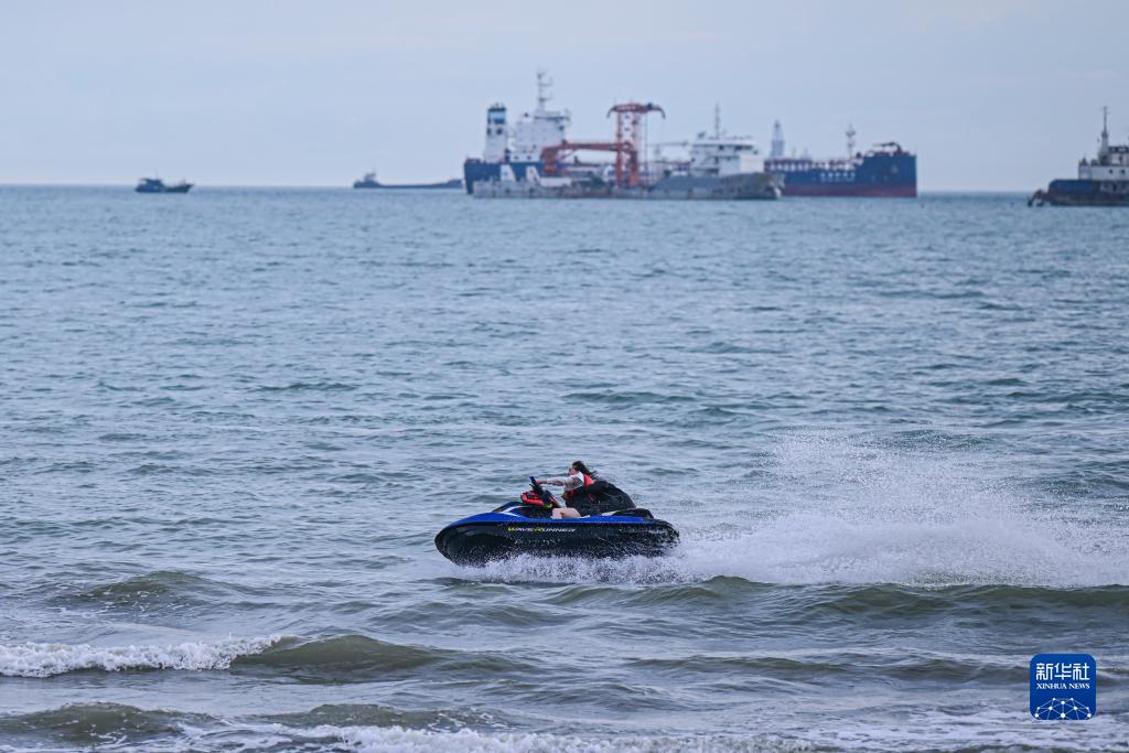 游客在海南省三亞市三亞灣體驗水上項目(8月30日攝)。三亞灣位于海南省三亞市主城區南部,海域面積75平方千米,是三亞市作為著(zhù)名旅游目的地的重要資源依托。