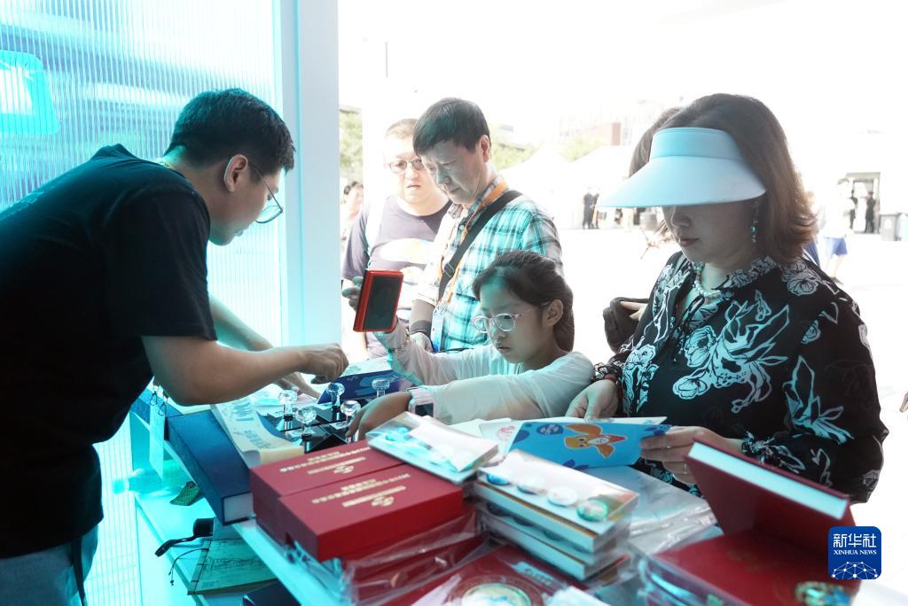 9月3日,在首鋼園區的一個(gè)服貿會(huì )官方特許商品店,觀(guān)眾選購“福燕”文創(chuàng )商品。