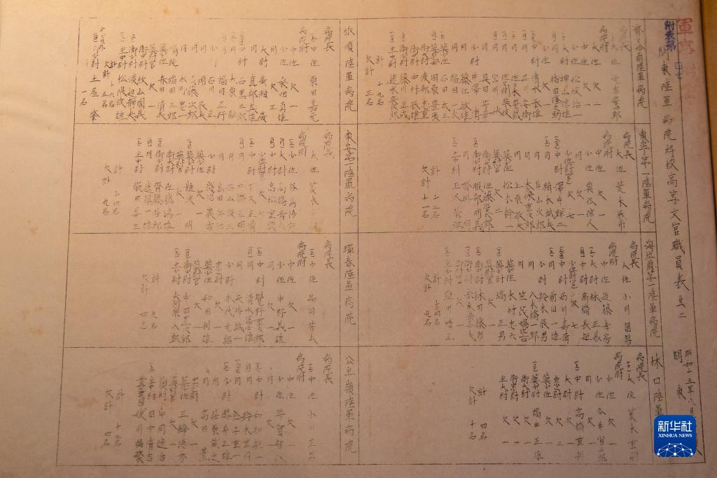 這是在侵華日軍第七三一部隊罪證陳列館拍攝的《關(guān)東陸軍病院將校高等文官職員表》(影印件)(9月2日攝)。