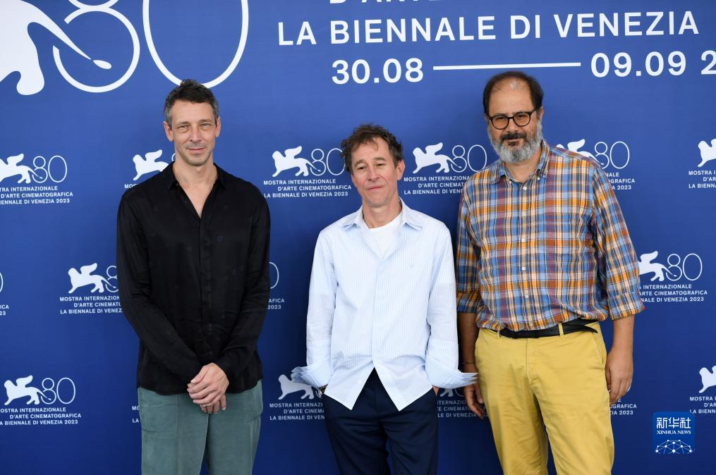9月3日,電影《野獸》導演貝特朗·波尼洛(中)攜主創(chuàng )人員出席意大利威尼斯電影節拍照式。
