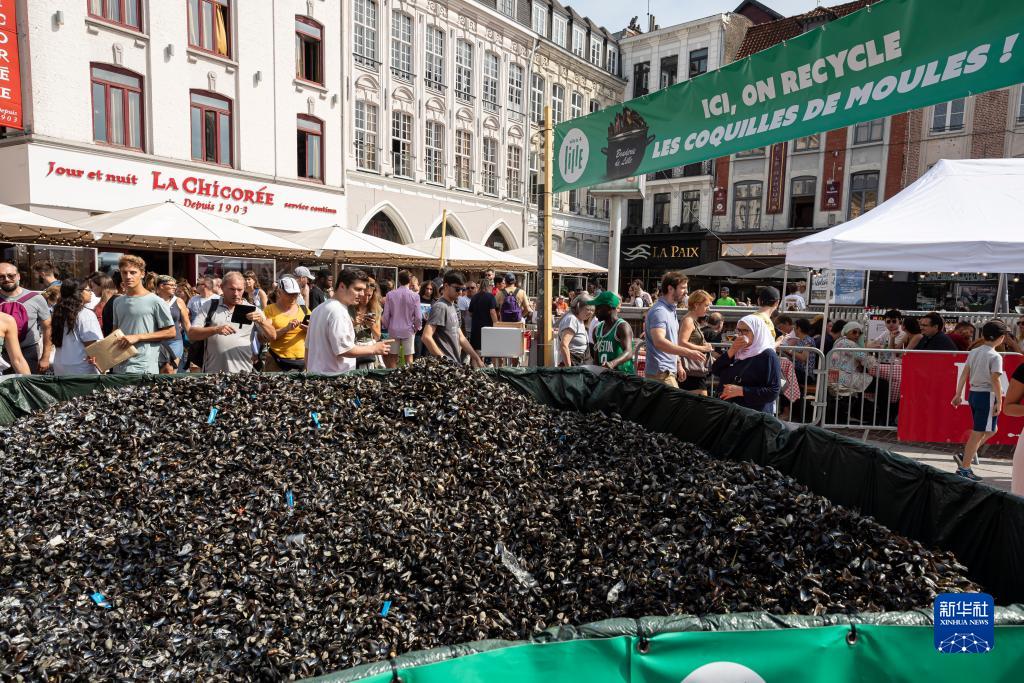 9月3日,在法國里爾舊貨市場(chǎng)上,就餐后留下的貽貝殼被集中收集處理。