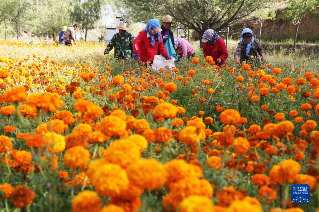9月4日,農民在甘肅省定西市隴西縣馬河鎮賀家川村采摘萬(wàn)壽菊。