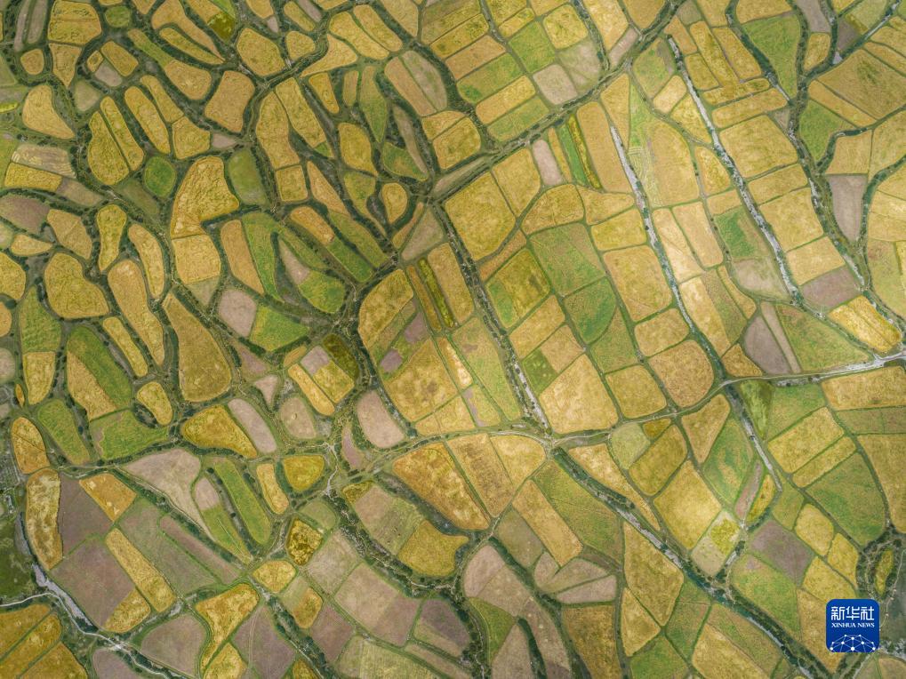 這是然烏湖畔的農田(9月4日攝,無(wú)人機照片)。