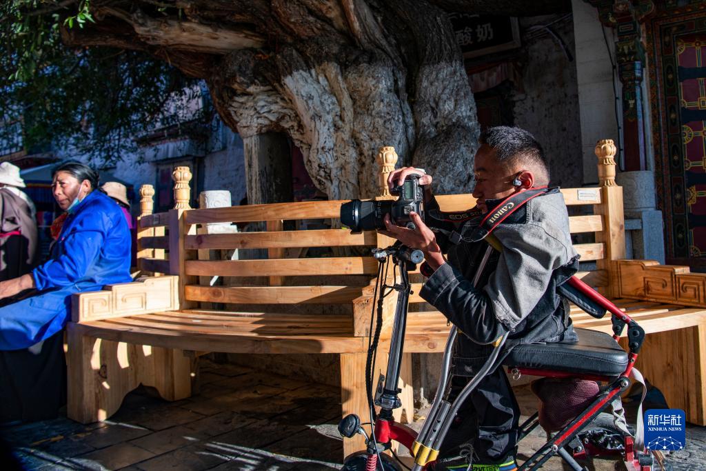 2017年,拉巴頓珠進(jìn)入拉薩市殘疾人托養中心生活,日子過(guò)得安定有保障,但他說(shuō):“我還年輕,我也有夢(mèng)想,我想靠自己的勞動(dòng)養活自己?!?托養中心為殘疾人開(kāi)設了多種課程,拉巴頓珠選擇了自己最感興趣的攝影和視頻制作。2021年,他離開(kāi)托養中心,找到肢體殘疾的創(chuàng )業(yè)者覺(jué)列,到其開(kāi)辦的文化傳播公司負責攝影和視頻制作,開(kāi)始了自食其力的生活。