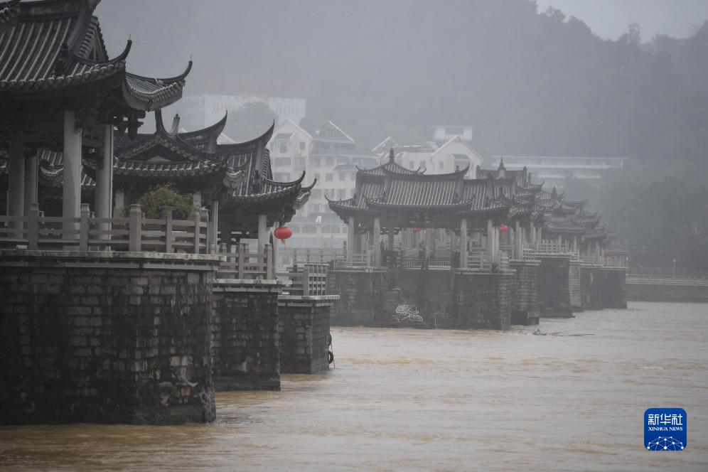 9月5日,受臺風(fēng)“??庇绊?,廣東省潮州市廣濟橋景區暫停開(kāi)放。強降水使韓江流速超出安全標準,梭船組成的浮橋已拆除。