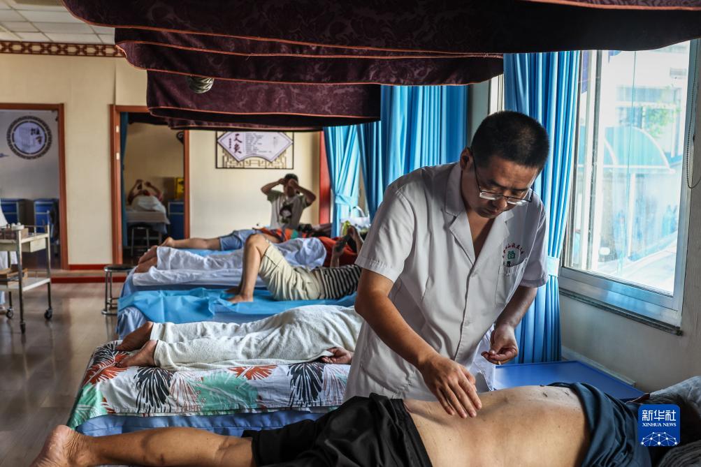 9月2日,在文登環(huán)山社區衛生服務(wù)中心,醫生王永剛為患者進(jìn)行中醫診療。