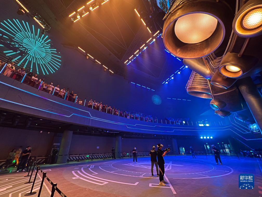 9月5日,在服貿會(huì )首鋼園區首鋼一高爐SoReal元宇宙樂(lè )園內,游戲玩家向觀(guān)眾展示VR競技游戲。