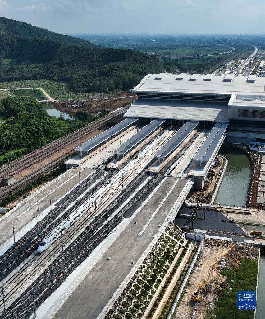 9月5日,一列試運行列車(chē)通過(guò)江陰站(無(wú)人機照片)。