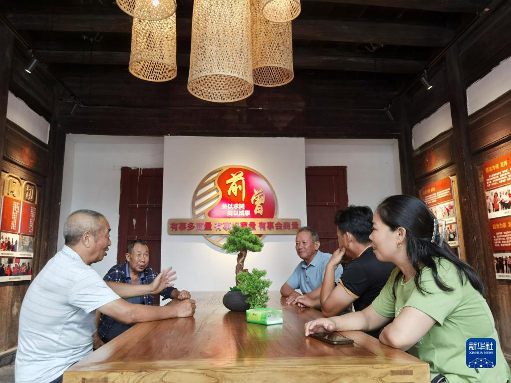 9月5日,在江西南昌進(jìn)賢縣泉嶺鄉前溪村,村民在議事館內商討村內溝渠修建事宜。2021年10月開(kāi)始,前溪村大力推進(jìn)農村路域環(huán)境整治、人居環(huán)境整治和農業(yè)特色產(chǎn)業(yè)升級。