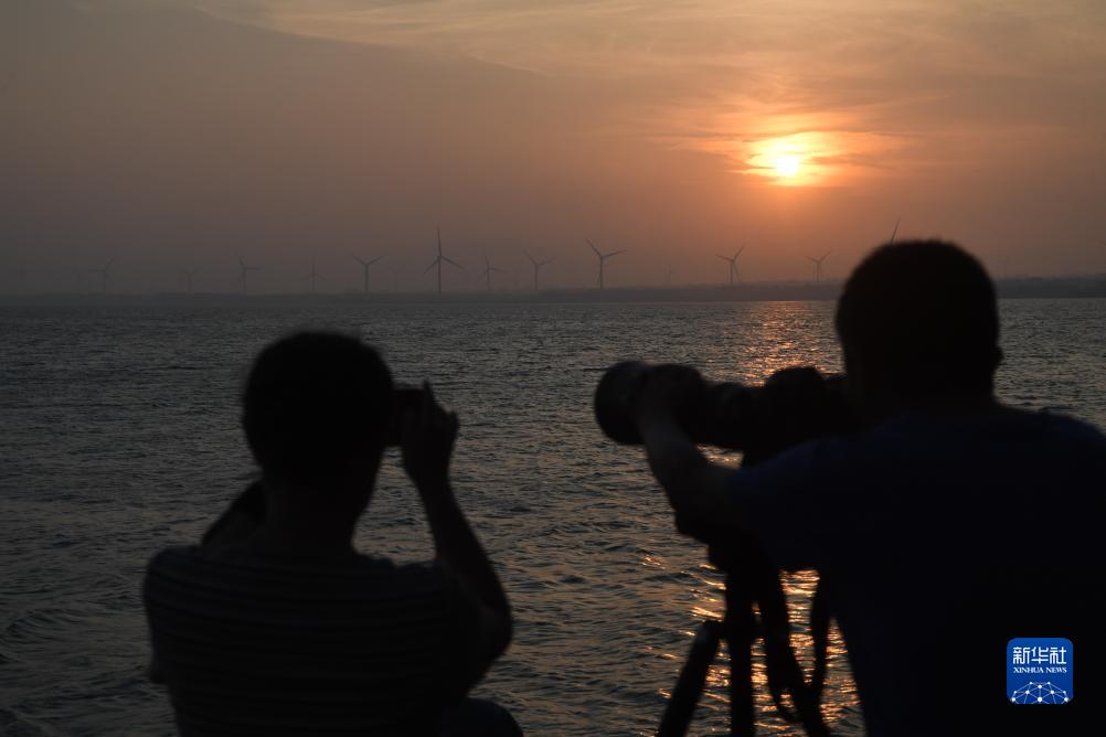9月5日,游客在河北省張家口市懷來(lái)縣官廳水庫拍攝日落。