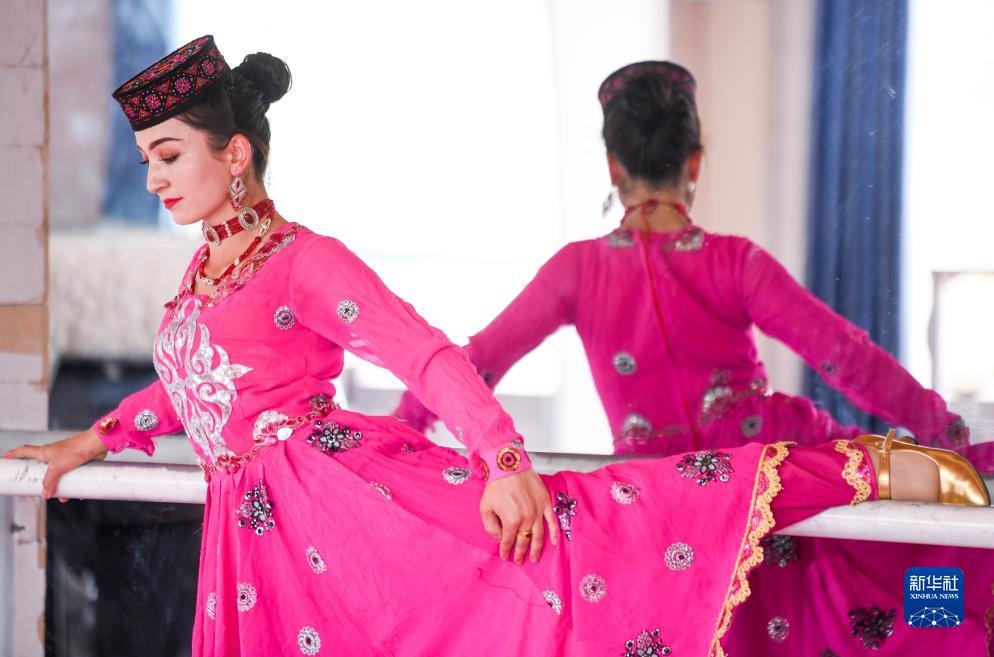 在新疆塔什庫爾干塔吉克自治縣帕米爾旅游區游客服務(wù)中心,縣文工團演員在演出前做準備(9月4日攝)。