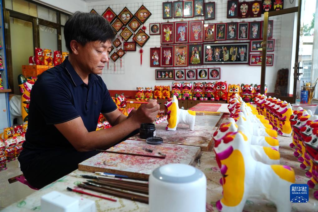 9月5日,在山東省高密市姜莊鎮的一處非遺工坊,非遺代表性傳承人聶宏希在制作泥老虎產(chǎn)品。