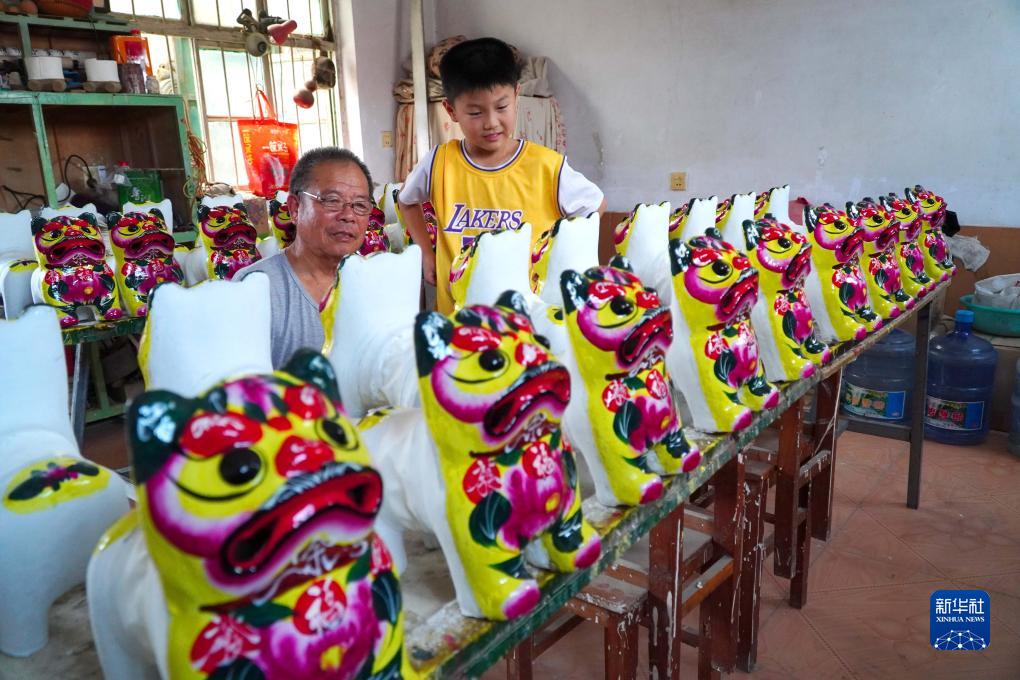 9月5日,在山東省高密市姜莊鎮的一處非遺工坊,村民聶祥之在制作泥老虎產(chǎn)品。