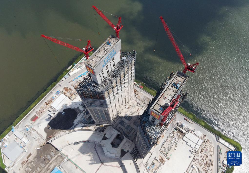 9月6日拍攝的臨港西島中銀金融中心項目建設工地(無(wú)人機照片)。