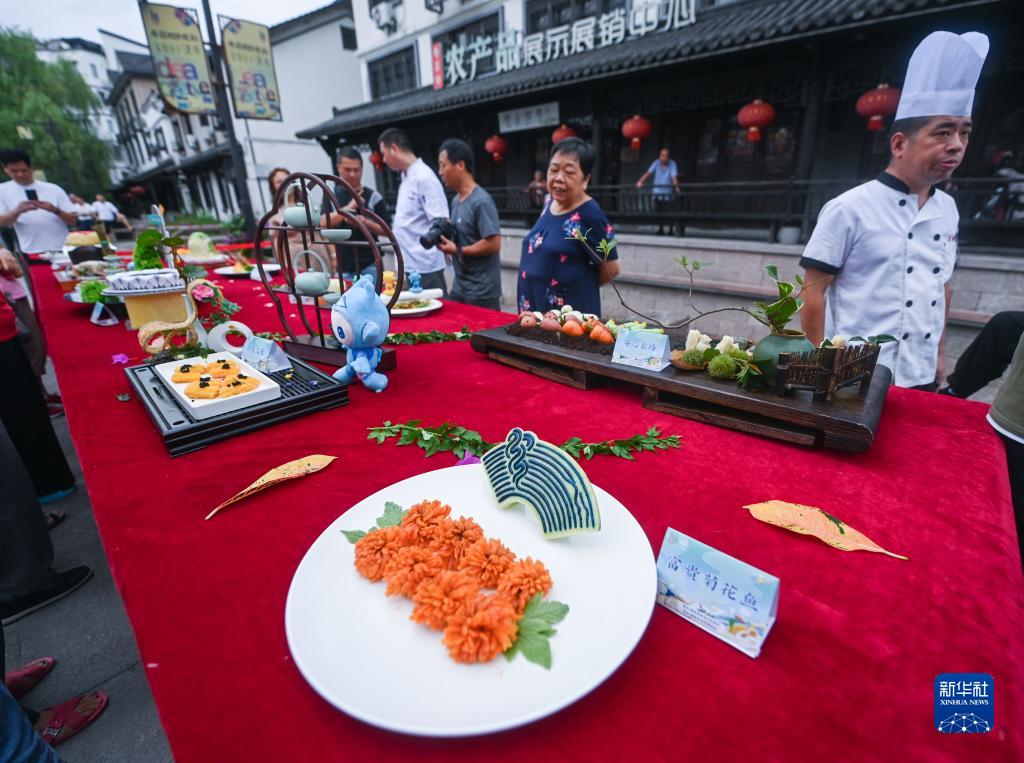9月6日,在浙江省建德市壽昌古鎮開(kāi)幕的古鎮好吃節上,由建德市餐飲協(xié)會(huì )制作的“魚(yú)躍亞運”“騰龍飛天”“亞運定勝”“金牌滿(mǎn)堂”等多道亞運主題菜品在現場(chǎng)展示,吸引了眾多市民的眼球。