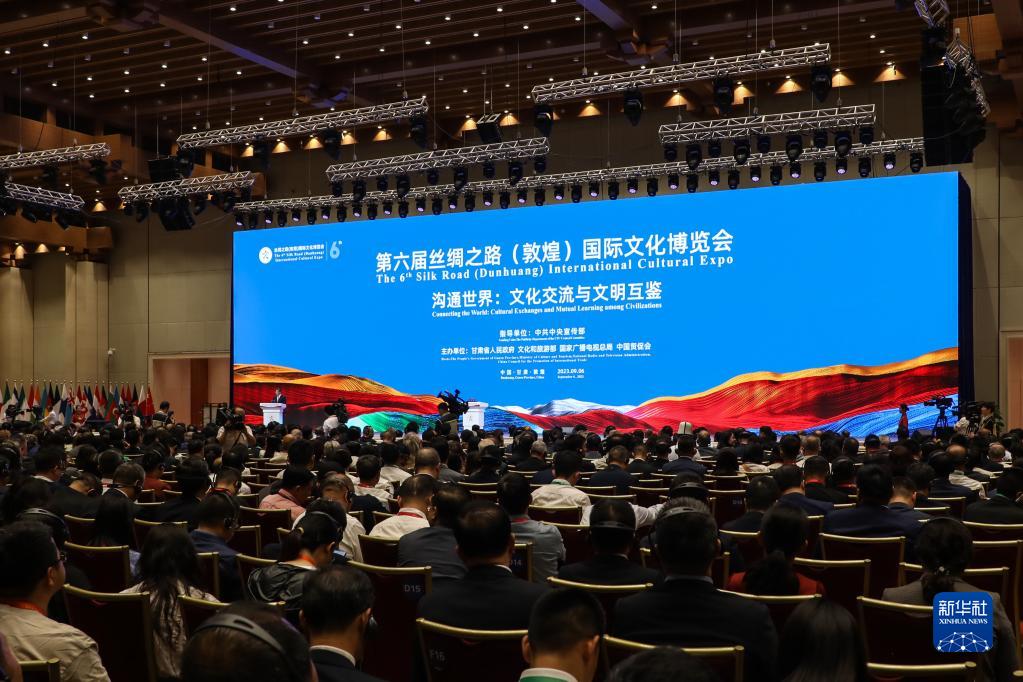 這是9月6日拍攝的第六屆絲綢之路(敦煌)國際文化博覽會(huì )開(kāi)幕式現場(chǎng)。