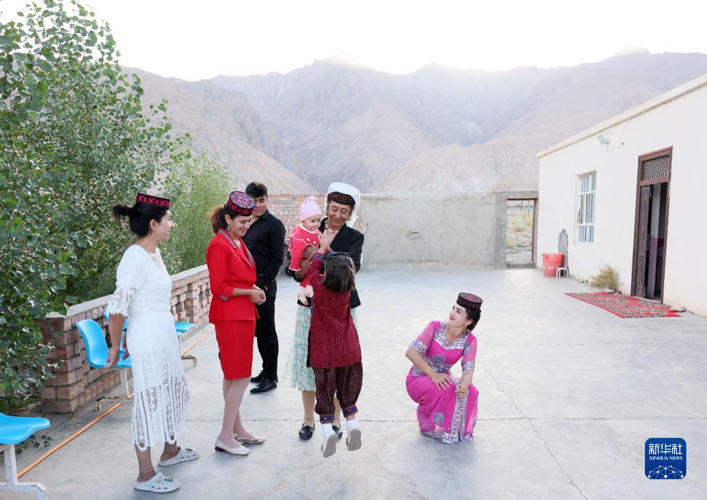 晚飯過(guò)后,一家人在門(mén)前小院聊天休息(9月4日攝)。