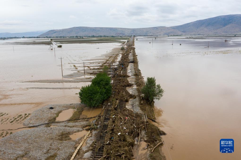 這是9月7日在希臘卡爾季察拍攝的洪水災區。