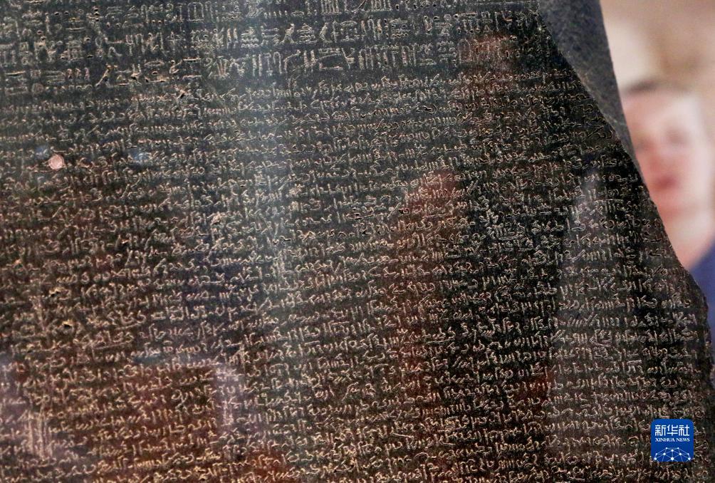 這是9月7日在英國倫敦大英博物館拍攝的羅塞塔石碑。
