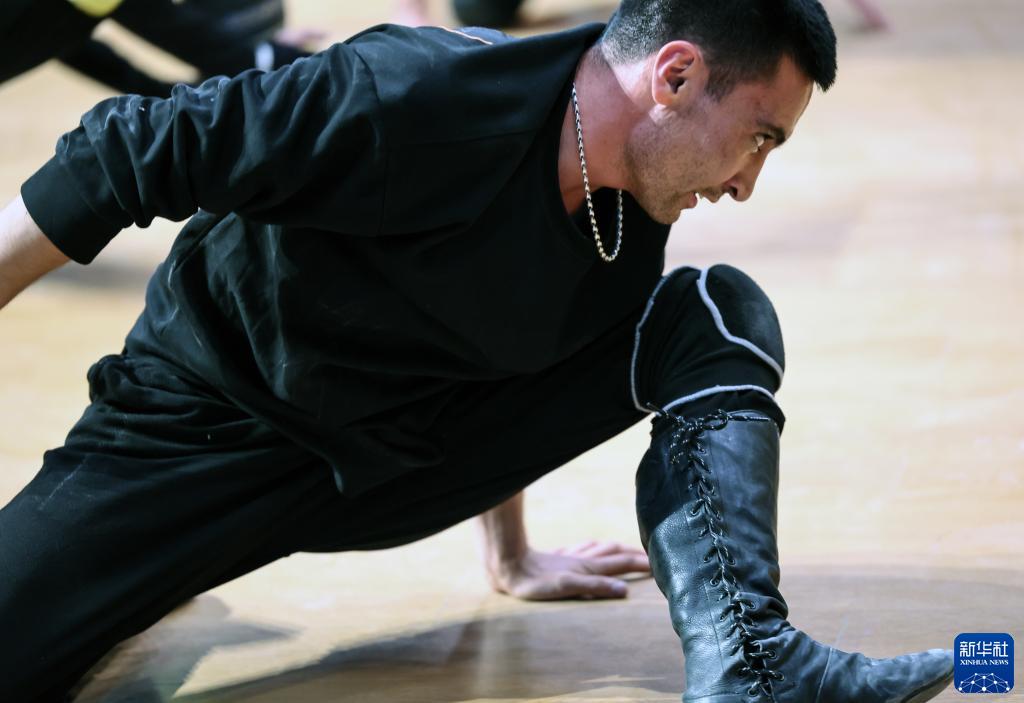 新疆塔縣文工團演員巴拉提·買(mǎi)代沙在排練雜技節目(9月4日攝)。新華社記者 蘭紅光 攝