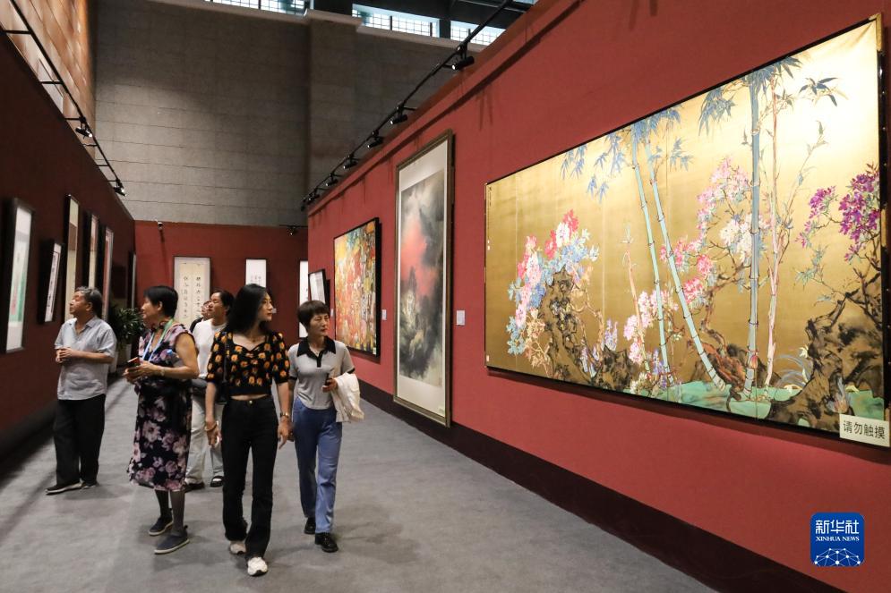 9月7日,觀(guān)眾在第六屆絲綢之路(敦煌)國際文化博覽會(huì )上參觀(guān)絲綢之路繪畫(huà)藝術(shù)精品展。