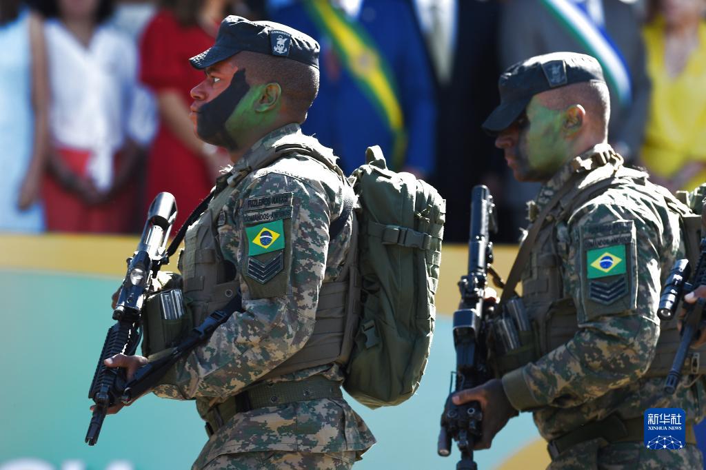 9月7日,士兵在巴西首都巴西利亞參加獨立日慶?;顒?dòng)。