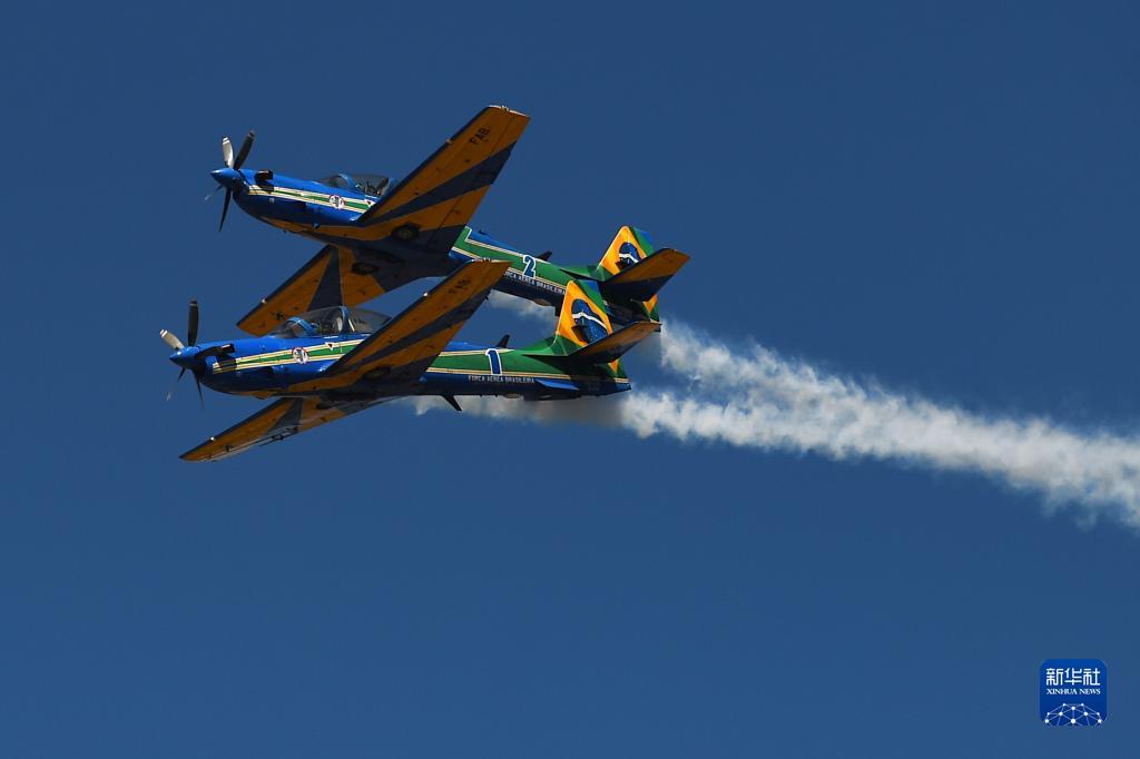 9月7日,飛機在巴西首都巴西利亞舉行的獨立日慶?;顒?dòng)上表演。