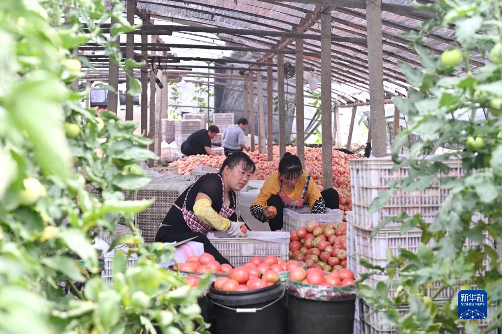 9月8日,河北省灤州市小馬莊鎮一家蔬菜種植合作社的社員在分揀收獲的西紅柿。