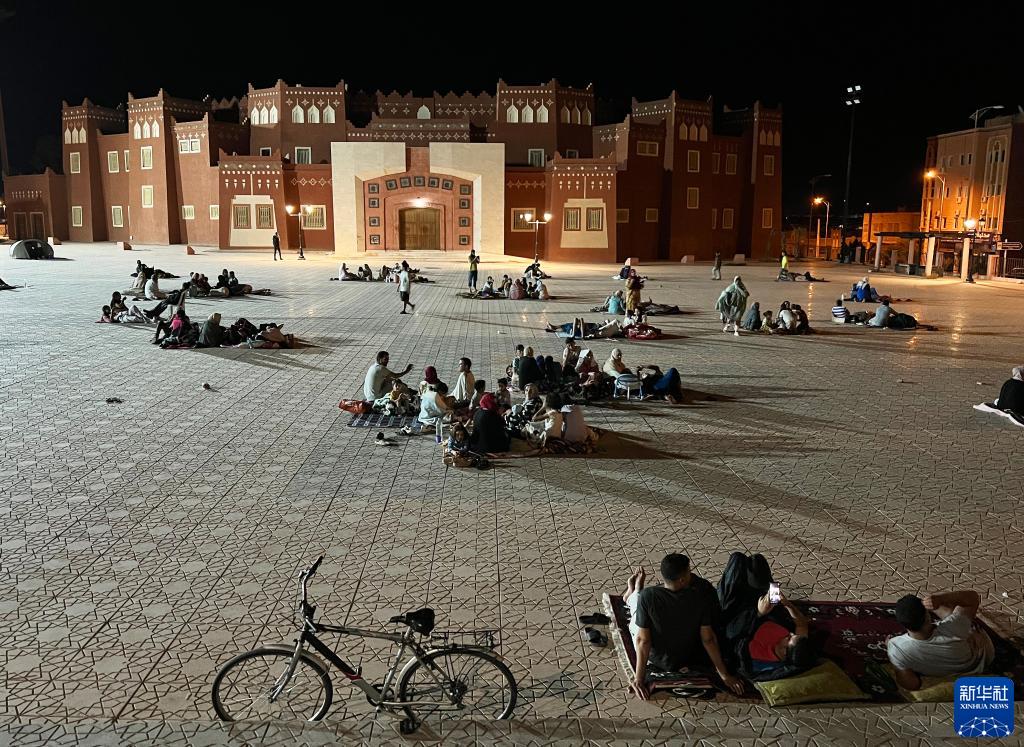 9月9日凌晨,在距離震中200多公里的摩洛哥瓦爾扎扎特市,居民在市區的空地避險(手機照片)。